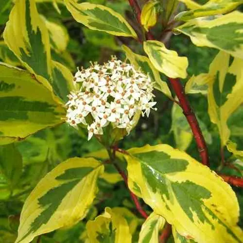 Цветет кустарник с начала весны до середины лета. Цветки мелкие, белого цвета, на их месте образуются синеватые ягоды. Поспевает дерен в середине сентября.