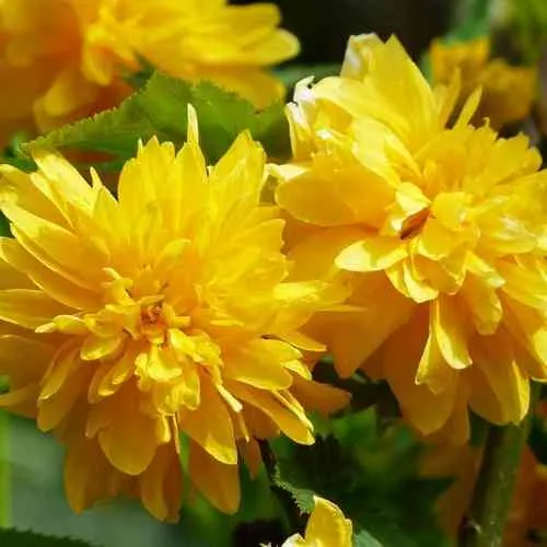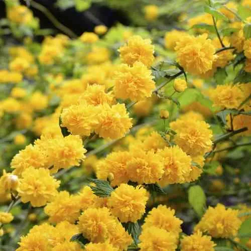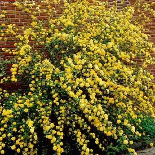 Керрия Ауреовариегатта - листопадный, быстрорастущий кустарник, высотой до 2 м с прямыми, зелеными, прутьевидными побегами, образующими конусовидную крону. Изящный и неповторимый кустарник, с ярко желтыми цветочками, напоминающими некрупные розочки или симпатичные помпоны. Цветет в мае-июне, период которого может достигать до 3-х месяцев. Повторно цветение также зачастую наблюдается осенью. Цветки растут поодиночке и источают резкий аромат. Это цветущее растение обладает хорошей устойчивостью к различным заболеваниям и воздействию вредителей. Керрия одинаково хороша и в качестве одиночного кустарника (солиста), и в большой группе. Керрию можно комбинировать с другими кустарниками и травянистыми растениями любого размера.