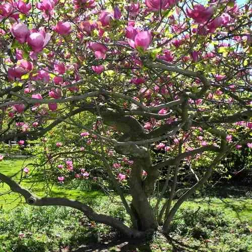 Крупные ароматные цветки чашевидной или бокаловидной формы, внешне напоминают мелкие тюльпаны. Диаметр цветков до 20-25 см, окрашены в белые, розовые, красные (иногда двухцветные) тона. Цветение магнолии наступает очень рано, до появления листьев, в период, когда большинство садовых деревьев еще не цветет. Это время, чаще всего, — апрель или начало мая. Цветет магнолия, начиная с раннего возраста. Плоды созревают осенью.