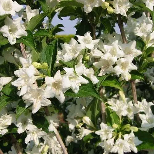 Быстрорастущая, что позволяет вам быстро получить значительные результаты в оформлении вашего участка.Вейгела Кандида радует своим приростом до 30 см в год, что значительно ускоряет создание декоративных групп или живых изгородей. Овально-заостренные листья длиной 6-10 см имеют яркий зеленый цвет, который будет прекрасно контрастировать с белыми колокольчатыми цветами.