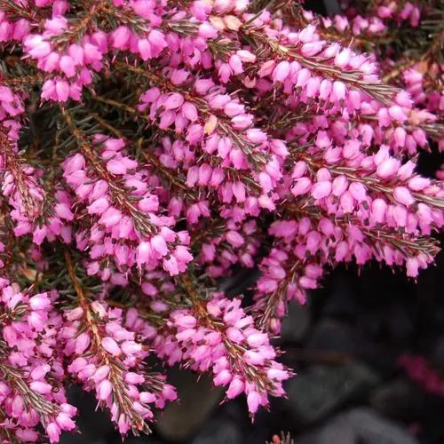 Главное украшение этой эрики — её сиренево-розовые цветки, которые появляются в большом количестве в апреле-мае. Начиная с трёхлетнего возраста, растение радует обильным цветением, создавая в вашем саду настоящий фейерверк красок.
