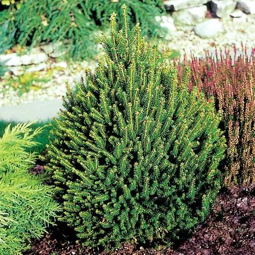Компакту чаще всего включают в групповые посадки, обустраивая с их помощью вересковые и каменистые сады, альпинарии и рокарии. Ели комбинируют с невысокими деревьями и кустарниками, многолетними декоративно цветущими культурами. Используют хвойную красавицу и для одиночных посадок. При этом высаживать растение не обязательно в открытый грунт — сорт подходит и для возделывания в контейнерах. В таком виде миниатюрные елочки можно увидеть в подземных переходах, на крышах многоквартирных жилых комплексов. При наличии у вас небольшого садика или палисадника, высадите карликовую ель в центре участка и зимой превратите ее в рождественское дерево, украсив елочными игрушками и гирляндами. Получится невероятно эффектно!
