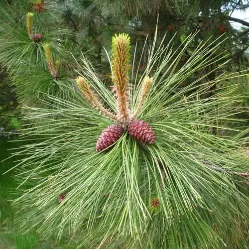 Сосна желтая - растет медленно, в молодом возрасте конической формы. Через 30 лет в высоту достигает более 10 м, а в ширину 2-3 м. Толстые и жесткие побеги — желто-коричневые, а иногда даже оранжевые, лимонные, издают приятный лимонный аромат. Иглы зеленого цвета, очень длинные (до 25 см).