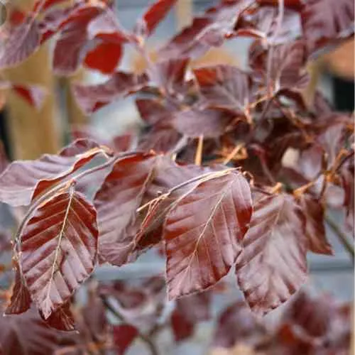 Бук лесной Атропуницеа - листопадное, величественное дерево с округлой кроной, формой ширкого конуса и оригинальной окраской листьев, со стволом, идущим до самой вершины, скелетные ветви сильные и широкораскидистые.