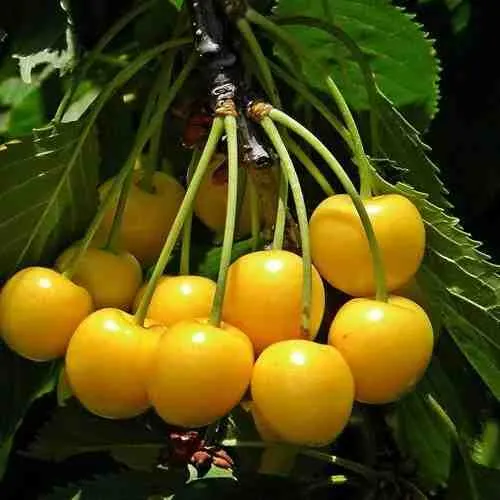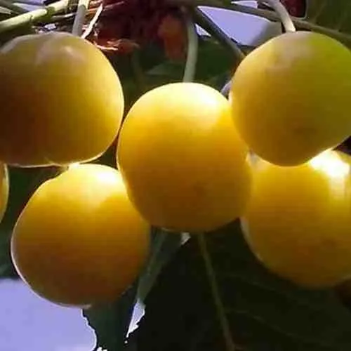Саженцы черешни Чермашная порадуют вас ягодами средней массой до 4,5 г. Эти округлые плоды имеют ярко-желтую окраску и подходят для употребления в свежем виде. Вкус черешни сладкий, что делает их идеальным угощением для всей семьи. Мякоть плодов нежная и сочная, а косточка средней величины легко отделяется от мякоти, что облегчает процесс употребления.