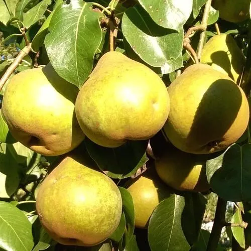 - Широко-грушевидной формы, желтовато-зелёного, а при полном созревании – золотистого жёлтого, с лёгким размытым покровом, цвета, покрыты оржавленностью. Кожица сухая. Мякоть маслянистая, тающая, приятная и сочная, кремово-белого цвета;