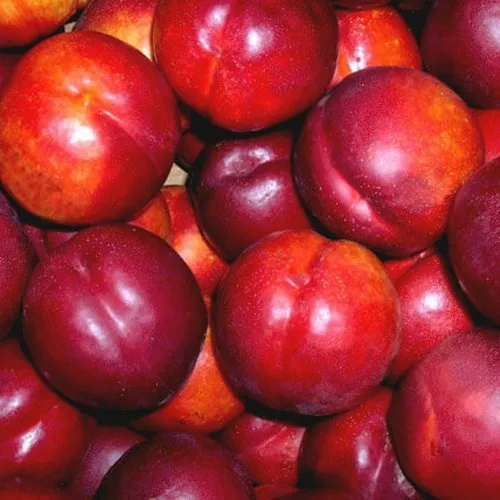 - Округлой формы, по большей части поверхности покрыты бордовым покровом. Мякоть приятная, плотная и сочная, бело-кремового цвета. Косточка легко извлекается;