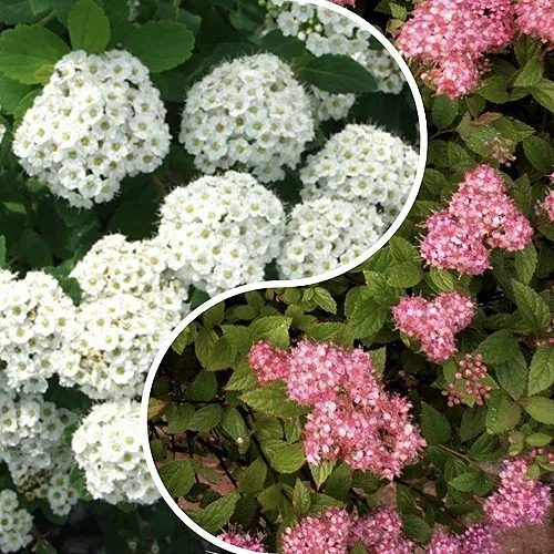 Красивый листопадный кустарник высотой 0,5-0,8 м, диаметр кроны до 1 метра. Сорт карликовый. Крона плотная, округлая, компактная. Листья весной и летом сверху темно-зеленые, снизу сизоватые, осенью желтые, овальные, до 3 см в длину. Цветы нежно-розово-красные, мелкие, диаметром 0,5 см, собраны в щитковидные соцветия на концах ветвей, диаметр соцветия – 3-4 см. Период цветения - июнь – июль, продолжительность цветения – около 45 дней, цветение обильное. Хорошо переносит морозы.